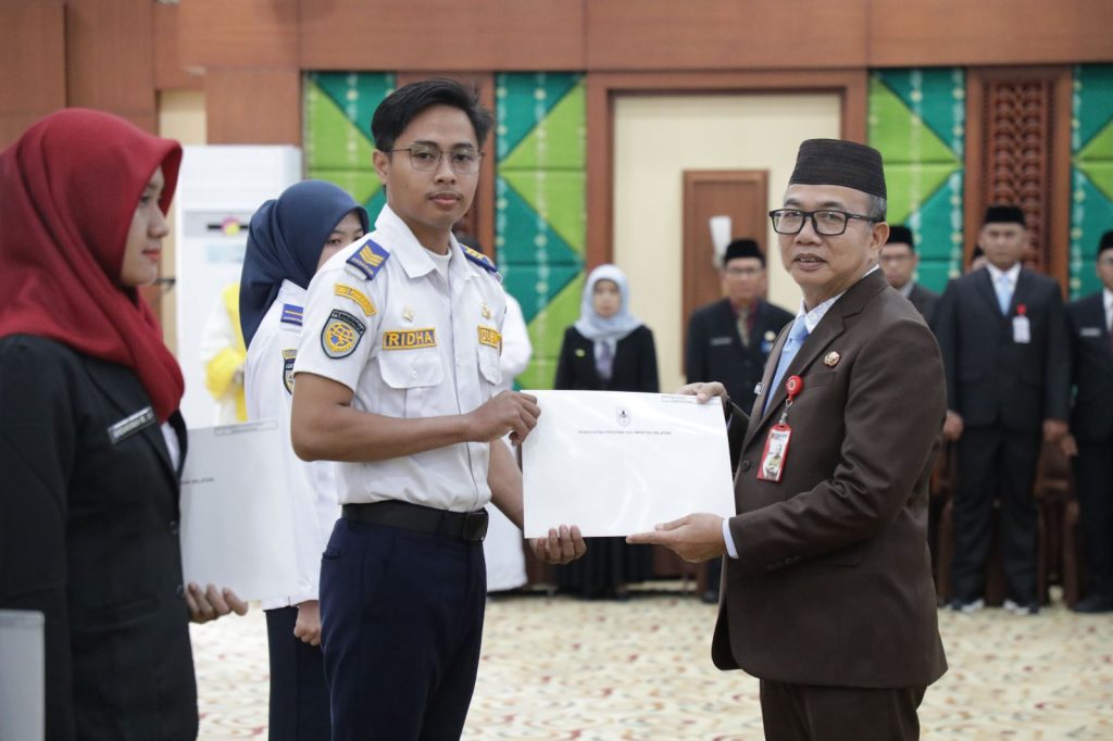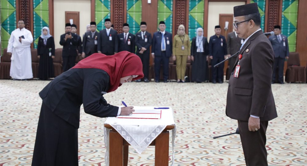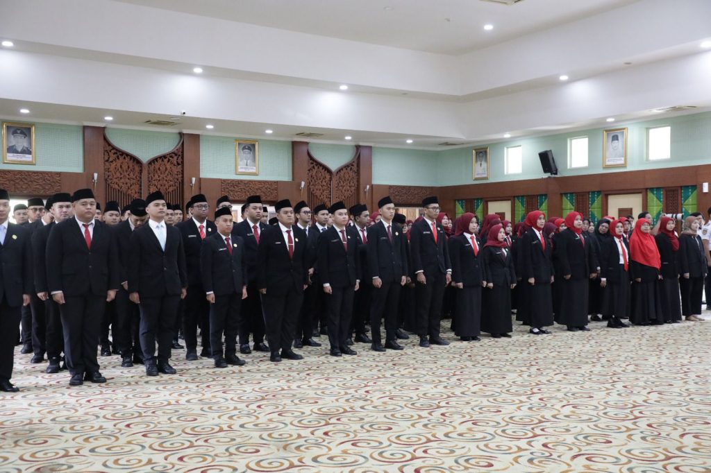Banjarbaru – Gubernur Kalimantan Selatan H Muhidin diwakili Sekretaris Daerah Provinsi Kalimantan Selatan, M Syarifuddin lantik 116 Pejabat Fungsional dan serahkan SK CPNS dan PNS lulusan Sekolah Tinggi Transportasi Darat (STTD) pada Senin (9/3) pagi, di Gedung Idham Chalid, Banjarbaru.