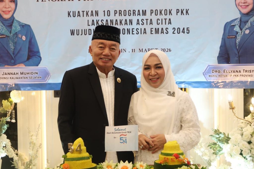 Banjarmasin – Usai melaksanakan kegiatan Prosesi Khataman Al-Qur’an, Hj. Fathul Jannah Muhidin juga melaksanakan Tasyakuran Hari Kesatuan Gerak (HKG) PKK Ke-54 Tingkat Provinsi Kalimantan Selatan Tahun 2026, di Rumah Dinas Gubernur Mahligai Pancasila Banjarmasin, Rabu (11/03/2026) sore.