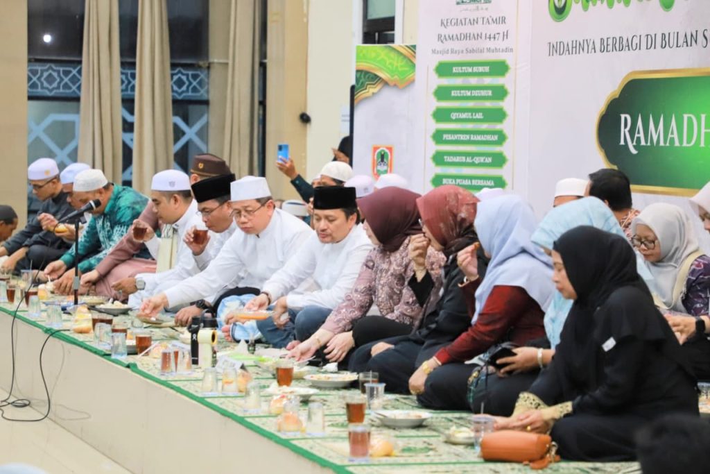 Banjarmasin—Usai membuka Festival Pasar Wadai Ramadhan 1447 Hijriah, Wakil Gubernur Kalimantan Selatan, H. Hasnuryadi Sulaiman melanjutkan agenda berbuka puasa bersama dengan masyarakat di Masjid Sabilal Muhtadin, Kota Banjarmasin, pada Kamis (19/2/2026) malam.