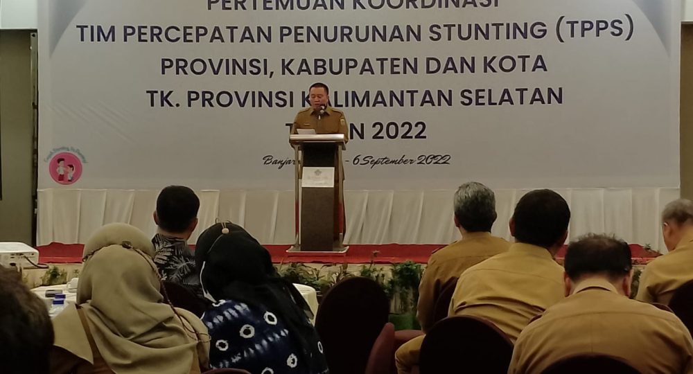 Banjarmasin – Wakil Gubernur Kalimantan Selatan, H Muhidin turut dalam pembukaan Rapat Koordinasi (Rakor) Tim Percepatan Penurunan Stunting (TPPS) Provinsi, Kabupaten/Kota Se Kalsel tahun 2022 di Banjarmasin, Senin (5/9).